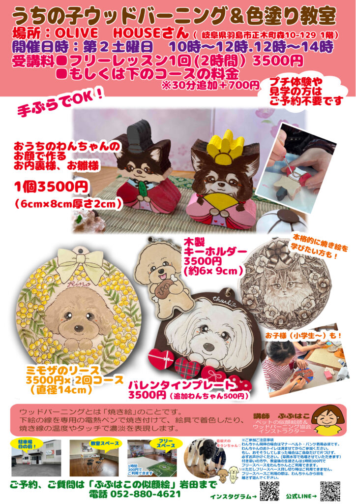 ※ご予約は、ぶぶはこのアトリエでのウッドバーニング教室のご予約です。ご予約〇はご予約可能日となります。